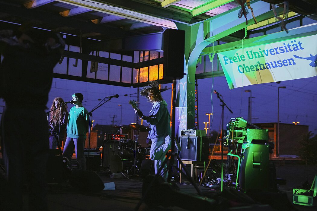 TOGETHER setzt unsere letztjährigen Quartiers-Impulse „Share everything“ (2023), „Much more to share“ (2024) und “In between” nachhaltig fort. Insbesondere die in den letzten Jahren mit diesen Projekten sowie auch durch unsere Teilnahme am Quartiers-Entwicklungsprojekt "Creative City" aufgebauten Verbindungen, Austausche und Zusammenarbeiten mit anderen in Oberhausen.Mitte aktiven Initiativen, Gruppen und Organisationen wollen wir vertiefen und verstetigen. Unser Quartiers-Projekt besteht aus drei sich ergänzenden Teilen. Die Projektteile Dance- & Music-Jam: extended und Freie Uni Oberhausen setzen impulsgebende kontinuierliche Arbeiten fort, entwickeln neue Formate und bauen die mit ihnen gewachsenen kollaborativen Strukturen im Quartier weiter aus. Neu ins Quartier OB-Mitte senden wir Radio kitev. Erfunden und erprobend gestartet wurde Radio kitev bereits 2024 von Neu-Oberhausener*innen, die von (insb. kulturellen) Ereignissen und Geschehnissen sowie von eigenen Erfahrungen in ihrem Quartier berichten wollen. 2025 konnten wir diesen Impuls aufnehmen und entwickeln aktuell eine organisatorische, inhaltliche und technische Struktur für ein regelmäßiges Sende-Format dieses Quartiers-Radios. Hierzu gehört bereits auch eine von Beginn an mit anderen Akteur*innen in OB-Mitte vernetzte Arbeitsweise. 2026 soll Radio kitev erstmals regelmäßig aus dem und über das Quartier OB-Mitte senden: TOGETHER.